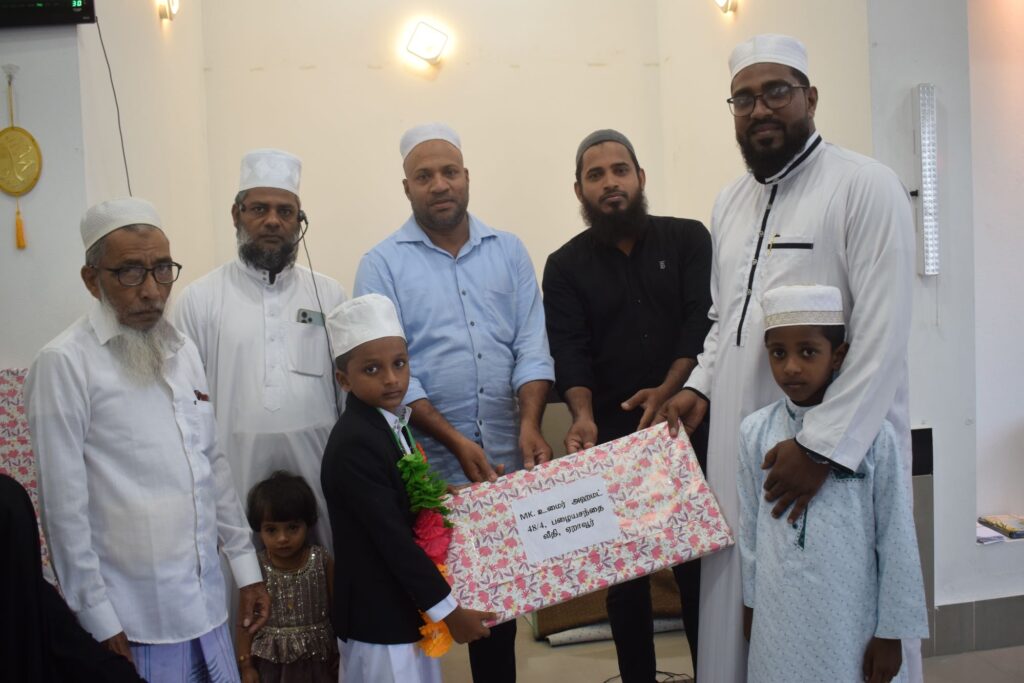 மத்ரஸாவுகளுக்கு இடையிலான 10வயதின் கீழ் பிரிவில் காத்தான்குடியில் நடாத்தப்பட்ட கிராஅத் போட்டியில் முதலிடம் பெற்ற ஏறாவூர் அல் -மத்ரஸதுல் முஹம்மதியாவின் மாணவச் செல்வன் எம்.கே.உமைர் அஹமட் இற்கான கௌரவிப்பு நிகழ்வு சாபி பள்ளிவாயலில் மத்ரஸதுல் முஹம்மதியாவின் பணிப்பாளர் அஷ்ஷேய்க்.KMM.கபீர் (இஹ்ஸானி)தலைமையில் (16/10) வியாழக்கிழமை அன்று அஸர் தொழுகையினை தொடர்ந்து இடம்பெற்றது .