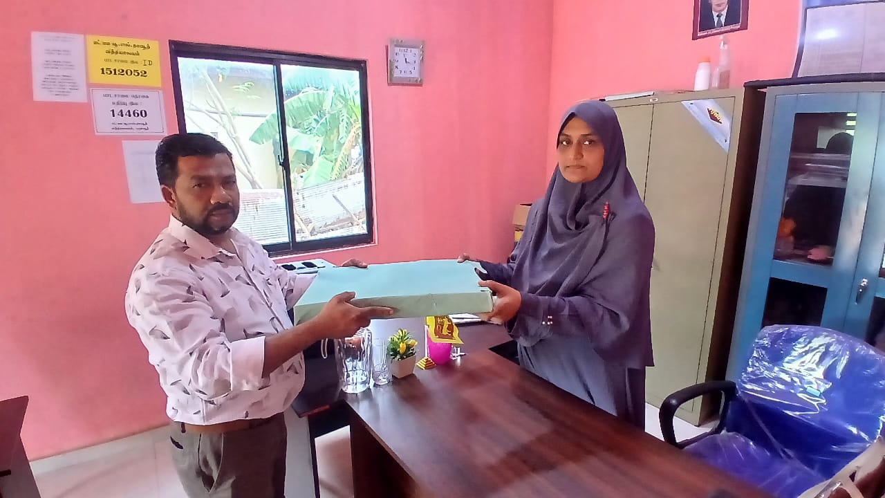 ஏறாவூர் பற்று ஸகாத் கிராமத்தில் அமைந்துள்ள யூ.எல்.தாவூத் வித்தியாலய நிருவாகம் கேட்டுக் கொண்டதற்கிணங்க ஏறாவூர் பற்று பிரதேச சபை உறுப்பினர் SL.முனாப்தீன் அவர்களினால் ஒரு தொகுதி காகித பொருட்கள் செவ்வாய்கிழமை அன்று பாடசாலை அதிபரிடம் கையளிக்கப்பட்டது.