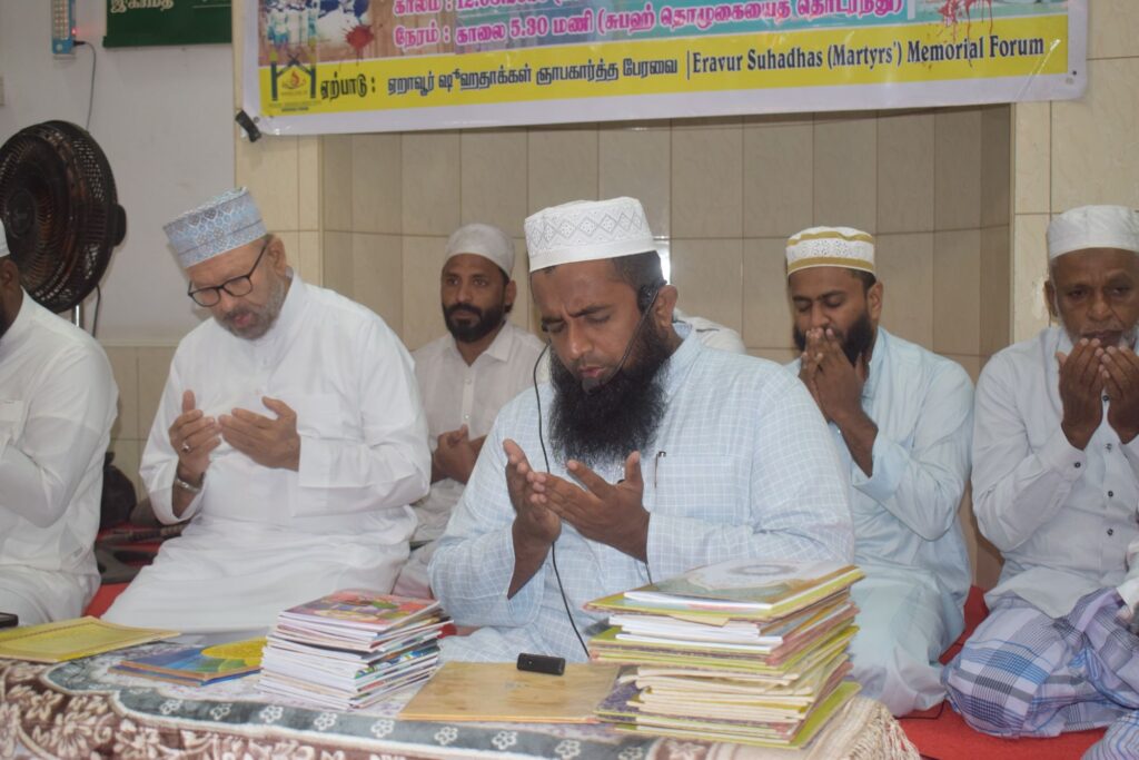 சுஹதாக்கள் ஞாபகார்த்த பேரவையின் ஏற்பாட்டில் ஏறாவூர் நூருஸ்ஸலாம் பள்ளிவாயலில் குர்ஆன் ஓதி தமாம் செய்யப்பட்டு விஷேட துஆ பிராத்தனை நிகழ்வும் இன்று செவ்வாய்கிழமை சுபஹ் தொழுகையினை தொடர்ந்து இடம்பெற்றது .